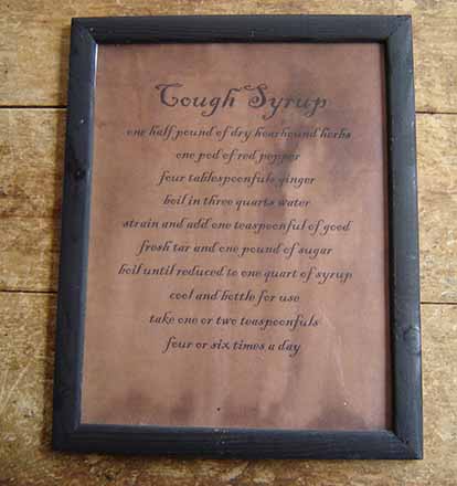 9.5" x 12". Recipe for old fashion cough syrup. Handmade in the USA.